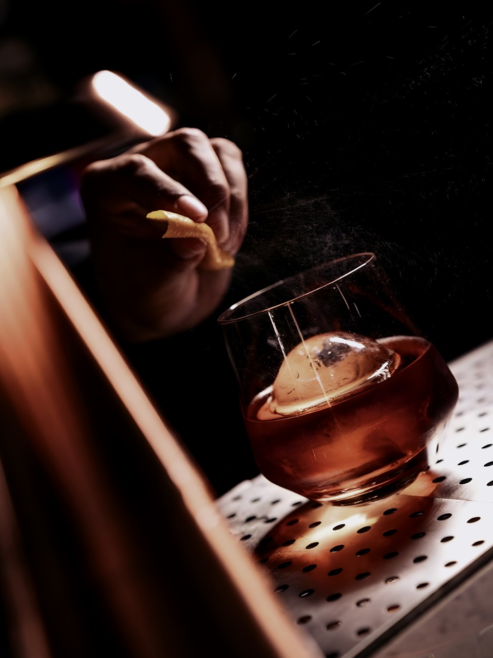 グラスにアイスホッケーを入れてゆっくり溶かし、ウイスキーの香りを放ちます。
