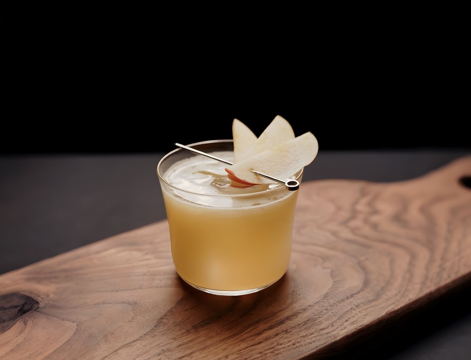 グラスに適量の氷を入れ、ウイスキーを45ml、レンモン搾り20ml、アップルジュースを45ml注ぎ、ソーダ水で満たし、リンゴのスライスを飾ります。
